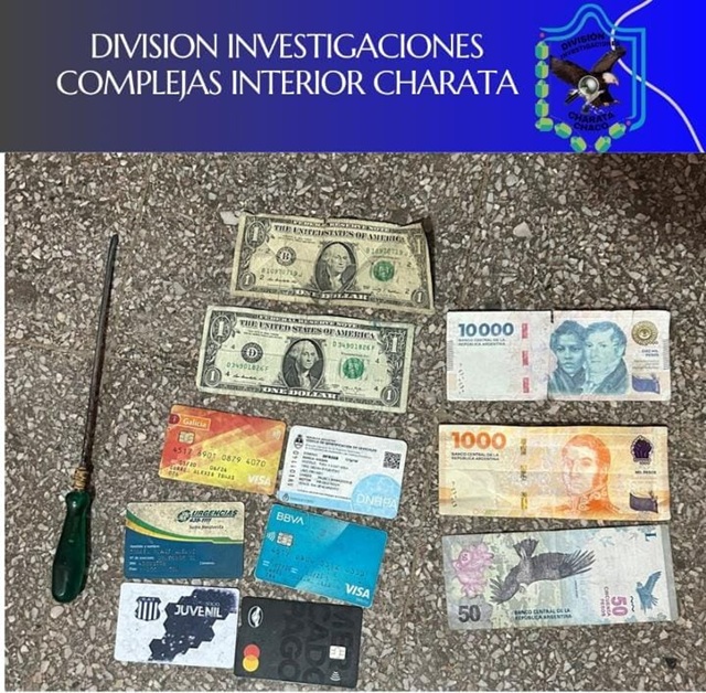 En su poder se hallaron elementos de interés para la causa, entre ellos una mochila con un destornillador modificado, dinero en efectivo en distintas monedas y varias tarjetas. La camioneta afectada, modelo Hilux SRX 4×4, se encontraba con la puerta abierta. Se espera que el propietario se presente para radicar la denuncia correspondiente.